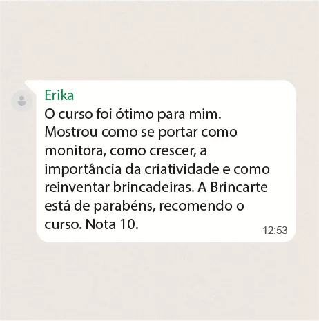 Através do curso de recreação Brincarte, já formou mais de 500 alunos nos cursos presenciais.