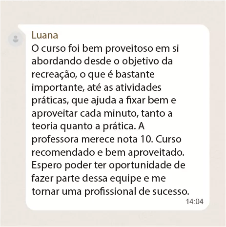Se você já trabalha na área, poderá aprimorar seus conhecimentos, aprender novas brincadeiras e técnicas para ser um recreador ainda melhor!